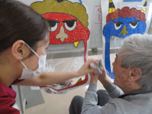 2月4日水曜日10時より 2階3階療養棟で豆まきを開催しました。