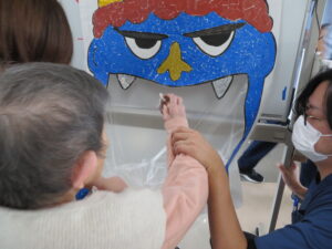赤鬼・青鬼ボードに投げ入れ、鬼退治に力を込めていらっしゃいました。