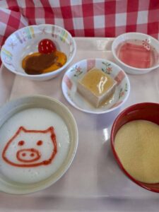 味噌カツ・ゴマ豆腐・デザート(イチゴゼリー)